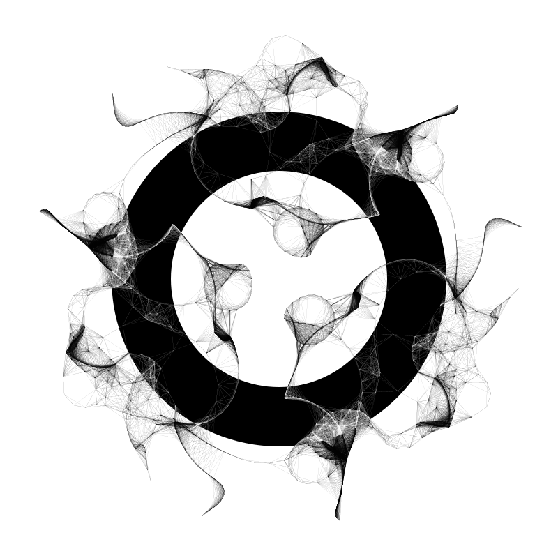 These began with the same technique I used in the Symmetry Web series, but I let the points wander, rather than be completely random. This creates amazing organic forms. Each one also features a ring where the colors are inverted. I look forward to sharing more of these soon.